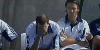 德国世界杯,是齐达内足球生涯中的最后一届大赛。法国队的最后一场比赛,也将成为齐达内在世界足坛的绝唱。前两战齐达内的表现其实非常低迷,对阵瑞士队和韩国队,法国队只收获了两场平局。齐达内自己还因为吃到两张黄牌而停赛。又是到了出线生死战,齐达内仿佛8年前那个忐忑不安的自己,坐在观众席注视着自己的队友。