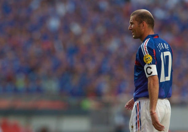 02年,齐达内顶着欧冠冠军的光环来到韩日世界杯的赛场。但在和韩国队的热身赛上,齐达内肌肉拉伤,被提前换下场。一时间,齐达内的伤情成为最牵动法国的消息。由于当时距离世界杯开幕仅有不到一周时间,齐达内在前两场比赛都作壁上观。卫冕冠军法国队此时才发现,他们已经患上了严重的“齐达内依赖症”,缺少了齐达内的情况下,法国队一负一平,表现令人大跌眼镜。第三场同丹麦的比赛齐达内终于复出,但一个磕磕绊绊的齐达内扔无济于事,一场0-2的失利让卫冕冠军耻辱出局。他和法国队在02世界杯的命运也正像最后一战的自己,有心无力,惨淡收场。