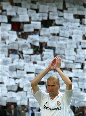 2006年的盛夏,在踏上德意志的土地与世界足坛告别前,齐达内首先还迎来了和伯纳乌的短暂离别。对阵比利亚雷亚尔的主场比赛,是齐达内皇马生涯的最后一个主场。全场8万名观众,高举齐达内的头像,高呼着“齐祖别走!”。面对此情此景,见过大风大浪的齐达内也眼含热泪,与深爱他的皇马球迷暂时作别。因为在前方等待着他的,还有一出最为盛大的告别舞台。