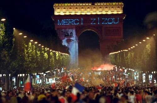 法国队在自己的家门口夺冠,成为了世界杯历史上第7支夺冠的球队。方丹、普拉蒂尼等众多法国足球人为之奋斗不息的梦想,在这一刻如愿以偿。决赛中梅开二度的齐达内,自然而然的成为了法国队皇冠上,最耀眼的明珠。为庆贺胜利而建的凯旋门,齐达内的头像也映射在其中,法国人用最高规格的仪式,为他们的足球英雄欢呼。