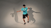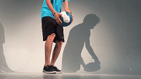 同样,我们练习时还是用手抛球,通过这种方式找到摆腿的节奏。