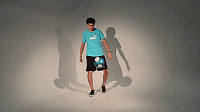 前面两个动作熟练之后,接下来我们把两个动作结合在一起,还是用手将球抛起到合适的高度,摆脱横穿身体,在恰当的时机用脚尖触球。