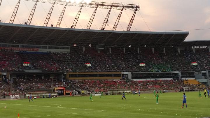 6 月 25 日下午,我早早就来到了工体。17 :30 工体的大门打开后,我随着众多国安球迷走进了工体。在工体内我买了一本新一期的《国安队刊》,还有一些吃的以及一杯饮料,之后我就走进了套票上的看台,9 下,并找到了我的座位号。