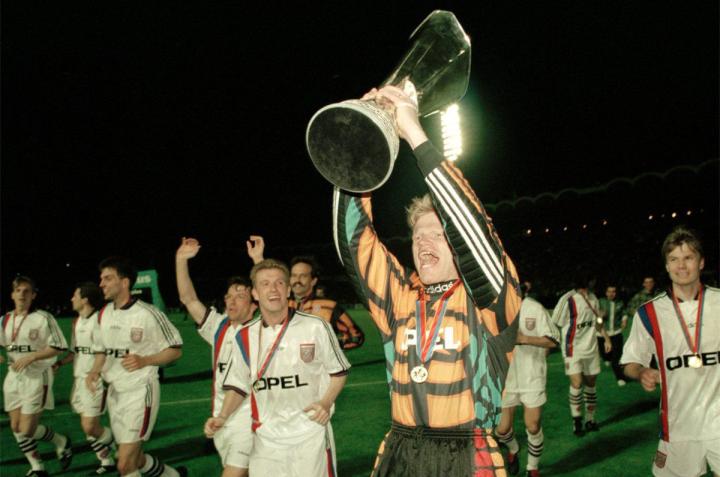 随着卡恩不断超越自己,他的冠军生涯也就此拉开帷幕。1995-96赛季,卡恩力助拜仁历史首度举起欧洲联盟杯;一年后,他则赢得首个德甲和德国杯桂冠。在此期间,卡恩还作为门将随德国队赢得了1996年欧洲杯。有趣的是由于德国队在最后时刻伤兵满营,卡恩在决赛加时赛中险些替换克林斯曼出场担任中场,只是比埃尔霍夫的“金球”提前终止了比赛……
