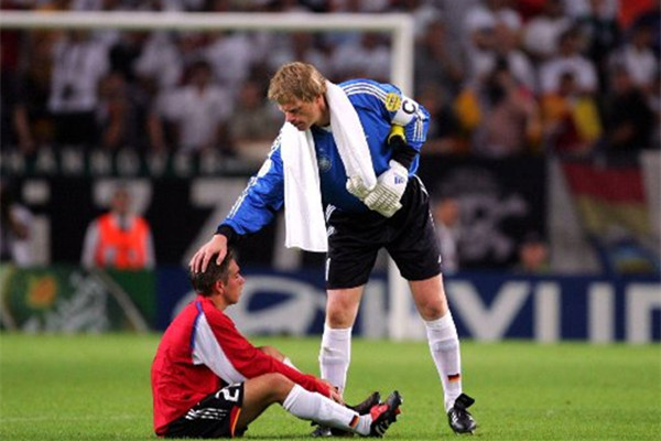 “你可以打出99场卓越比赛,但只要在1场犯错,人们就会记住。因此那一刻我知道,这个失误会陪同我的余生。”众所周知,卡恩在最终决赛中的脱手让罗纳尔多在下半场敲开了德国队城池,但是鲜为人知的是卡恩上半场挡住了巴西的疯狂围攻,下半场被席尔瓦踢伤手指才成为决赛转折点。正因如此,从未有人责备卡恩,诚如沃勒尔所言:“没有卡恩的最佳表现,我们不可能踏上世界杯决赛的舞台。”