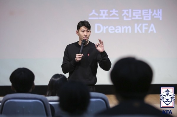 北京时间2月11日,根据韩国媒体Naver Sports发布的消息,韩国队员孙兴慜参加了韩国足协开展的职业体育推广计划——“梦想KFA”,KFA为韩国足协的简称,孙兴慜为参与者们留下了难忘的印象。