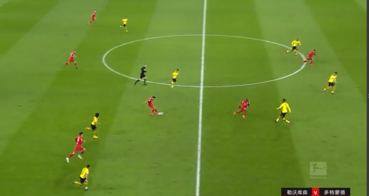 一是阵型脱节,被勒沃库森后场传导带乱。阿米里觅得空当,出球时并未受到任何干扰。此时多特两个后腰不在位置。
