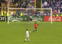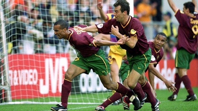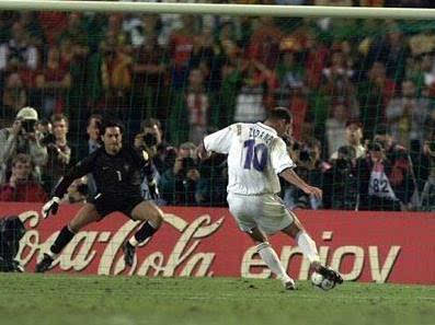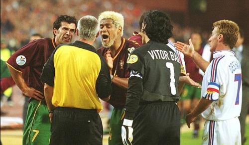 加时赛第116分钟,维尔托德底线近乎零度角的射门打到了金发金胡子的沙维尔手上,裁判在边裁的示意下判罚点球,葡萄牙球员怒不可遏,菲戈甚至愤怒的提前退场。齐达内冷静的将点球罚进,法国人金球致胜挺进决赛。而一年后齐达内就将加盟皇马与菲戈一起开启银河战舰的时代。