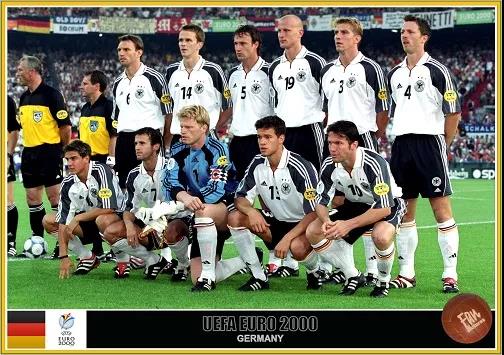 由里贝克执教的这支德国队青黄不接,卡恩已升任主力门将,39岁在美国踢球最后一届出战世界大赛的马特乌斯仍是球队主力,34岁的矮脚虎哈斯勒仍在大名单中,比他小了十几岁的巴拉克和代斯勒初出茅庐,锋线上上届欧洲杯的夺冠功臣32岁的球队队长比埃霍夫已经廉颇老矣,首战踢平罗马尼亚后就伤退欧洲杯,只能靠技术粗糙的光头高中锋扬克尔和35岁的老前锋基尔斯滕冲锋。
