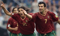 随后葡萄牙立马予以反击,菲戈石破天惊的远射和若昂-平托的俯身甩头攻门在上半场结束前就为葡萄牙扳平了比分,下半场鲁伊科斯塔手术刀般的直塞助攻努诺戈麦斯面对希曼捅射破门完成大逆转。