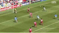 加时赛第113分钟,皮雷左路突破助攻,特雷泽盖凌空抽射破门,攻入了欧洲杯历史上最著名的金球!