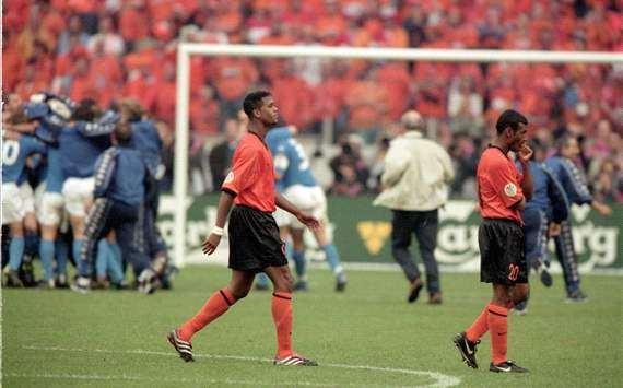 意大利人自1968年以来第一次打进欧洲杯决赛,也克服了连续三届世界杯点球大战失利被淘汰的魔咒。一支连续在1990年世界杯、1994年世界杯、1998年世界杯输掉点球大战的球队赢下了一支连续在1992年欧洲杯、1996年欧洲杯、1998年世界杯输掉点球大战的球队,荷兰队也成为连续第四届半决赛出局的欧洲杯东道主,里杰卡尔德也在赛后黯然辞职。20年后,在范戴克、德容、德利赫特这些新一代球星的带领下,再次拥有欧洲杯主场之利的荷兰队重回阿姆斯特丹竞技场又将奉献怎样的演出?