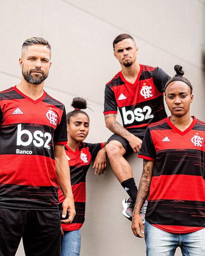 弗拉门戈新赛季主场球衣以继续以俱乐部标志性的红黑横纹样式示人,这已经成为这家巴西足球俱乐部的标志。新球衣上的红黑横纹较以往更宽,这一设计借鉴了俱乐部在上世纪80年代末曾经穿着过的球衣样式,不仅能唤起球迷们的昔日回忆,同时也与当下流行的复古风潮相契合。除了启用源自经典球衣的横纹设计外,新球衣还将源自街头风格的设计元素加入到红黑横纹中,红色横纹中加入由手写涂鸦字体书写的俱乐部助威歌曲,而黑色条纹中加入红色细节,让这件全新主场战袍看起来更具街头潮流感。