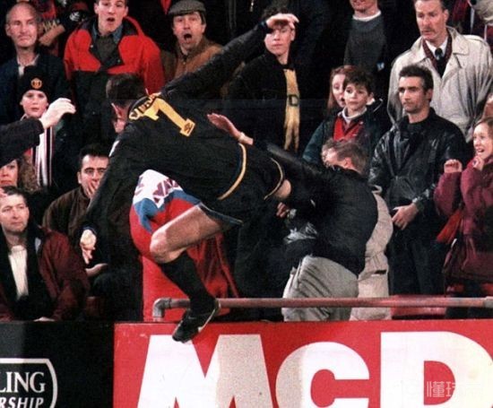 1995年1月25日,塞尔赫斯特公园球场,曼联和水晶宫战成了1-1平,那场比赛之所以被人们永远地铭记,是因为坎通纳的惊天一踹。坎通纳被红牌罚下,场边的水晶宫球迷骂坎通纳是法国杂种,坎通纳听闻这样的侮辱之后变得暴怒,他越过广告牌,用中国功夫式的横身飞踹狠狠伤了球迷西蒙斯一下。