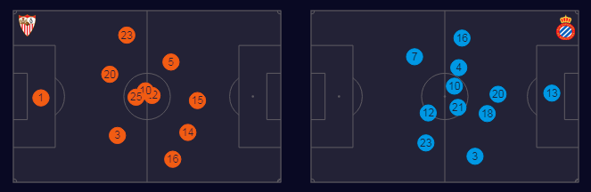 拥有主场之利的塞维利亚在上半场占据主动,洛佩特吉的球队凭借出色的中场对抗能力和积极的边路进攻向对手施压。除了缺少德托马斯,西班牙人的主力阵容里还少了大卫-洛佩斯和迪达克两员大将,整体运转比前两场要显得生涩不少,球员们花了一段时间才踩准步点。