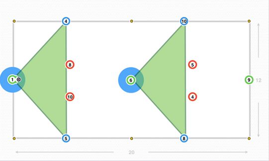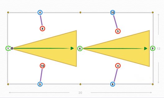 这个深度还可以吸引对方球员,红色8号和红色10号上前压迫,当后场3人组(绿色1号、蓝色4号和蓝色5号)控球时。守门员的控球,对手的紧逼,就为后腰(绿色6号)接球创造出了空间。