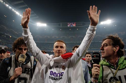 联赛末段,重新回归首发的贝克汉姆连续用进球与助攻帮助球队追分,最终反超巴塞罗那拿到阔别3年的西甲冠军,当伯纳乌球迷疯狂庆祝,贝克汉姆的内心却有些复杂,因为这是他最后一次代表银河战舰比赛了。