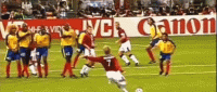 而要说圆月弯刀最经典的一幕,是在2001年10月对阵希腊的世预赛小组赛最后一场,在打平就能够直接晋级世界杯的情况下,英格兰人却又习惯性的落后了。比赛中贝克汉姆获得了多次施展必杀技的机会,但脚感不佳的他始终未能击中目标,直到比赛进入伤停补时阶段。