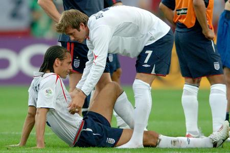 这次痛苦,包含了他的不甘与无奈,他明白这可能是他的最后一次世界杯了,但在心理的伤病之外,他的右腿膝关节实在疼痛难忍,贝克汉姆曾想坚持,看到主帅埃里克森想将其换下时,贝克汉姆一直示意再等一等,但最终伤痛让他无法奔跑。