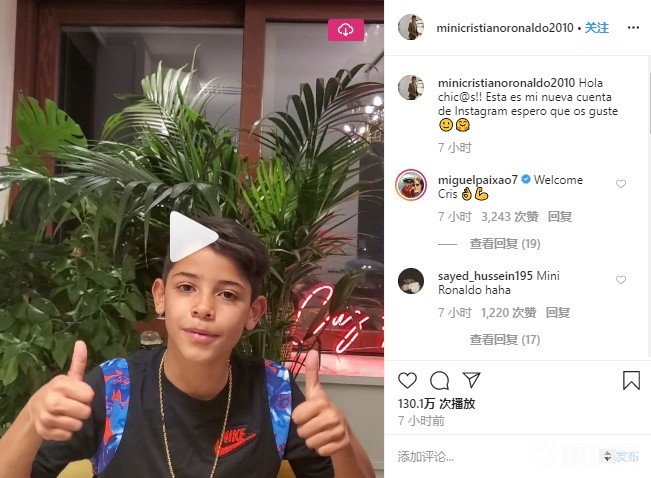 C罗是目前在Instagram拥有最多粉丝数的人,近日他的儿子迷你罗也开通了Ins,而且他的账户名称就叫“迷你罗”。