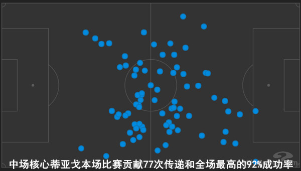 面对拜仁不断制造的攻势,切尔西防线借助门将卡巴列罗的发挥和横梁的帮助在上半场确保城门不失,同时在反击端则试图抓住拜仁高位压迫后留下的身后空当,除了吉鲁的空中优势为队友制作嫁衣,科瓦契奇全场比赛9次尝试过人8次成功的突破能力也是蓝军进攻提速推进的利器。于是整个上半场,拜仁的控球率达到68.3%,88%的传球成功率也领先对方8个百分点,但是切尔西却在射门方面以7-6领先,可见稳守反击的蓝军在进攻中更具效率。
