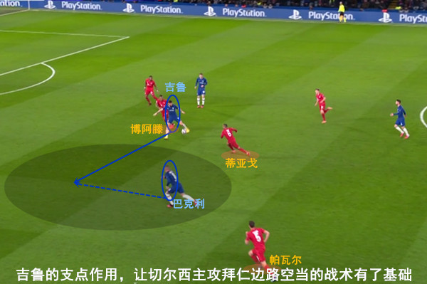 在优先立足防守的同时,吉鲁的首发出场同样预示切尔西在进攻端的设计也颇有针对性,毕竟拜仁的双后腰基米希和蒂亚戈身高明显不足,中卫阿拉巴仅有180cm,这就让吉鲁的身高优势成为球队在进攻端的重要依靠。因此,哪怕若日尼奥和科瓦契奇的地面传控被封锁,但是蓝军的高空作业渐渐成为主要选择,同时各个进攻点也以此为支点展开积极接应跑位,由此试图打出进攻速度,这与法国国家队的进攻战术有着相似之处。