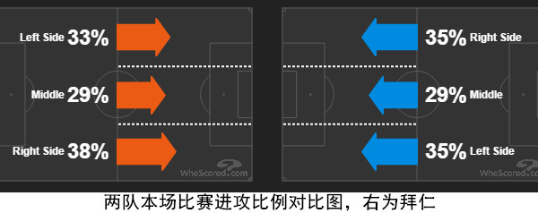 【中路渗透成为拜仁首选,蓝军上半场进攻更具效率】