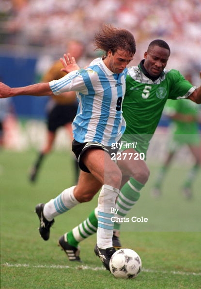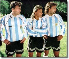 1994年世界杯前,还发生了一个小插曲,据说各大品牌都在争夺巴蒂斯图塔赞助商的机会,在意大利,对巴蒂有意的是diadora,还有刚刚崛起的美国品牌nike也准备在美国世界杯前孤掷一注,经过一番竞争,最终巴蒂斯图塔居然被reebok签约,当时的锐步可谓财大气粗,一口气签约了吉格斯、博格坎普,邓加等许多球员。据说当时nike还有公关人员因为签约巴蒂失败被公司炒鱿鱼。刚刚杀回意甲的巴蒂斯图塔摩拳擦掌,换上reebok integrity球鞋的巴蒂斯图塔在首轮小组赛就一鸣惊人,在和希腊队队的比赛中上演帽子戏法。但之后马拉多纳被查出服用禁药,阿根廷队虎头蛇尾,在八分之一决赛被罗马尼亚淘汰,巴蒂虽然在四场比赛打入四球,但留下的回忆只是遗憾。