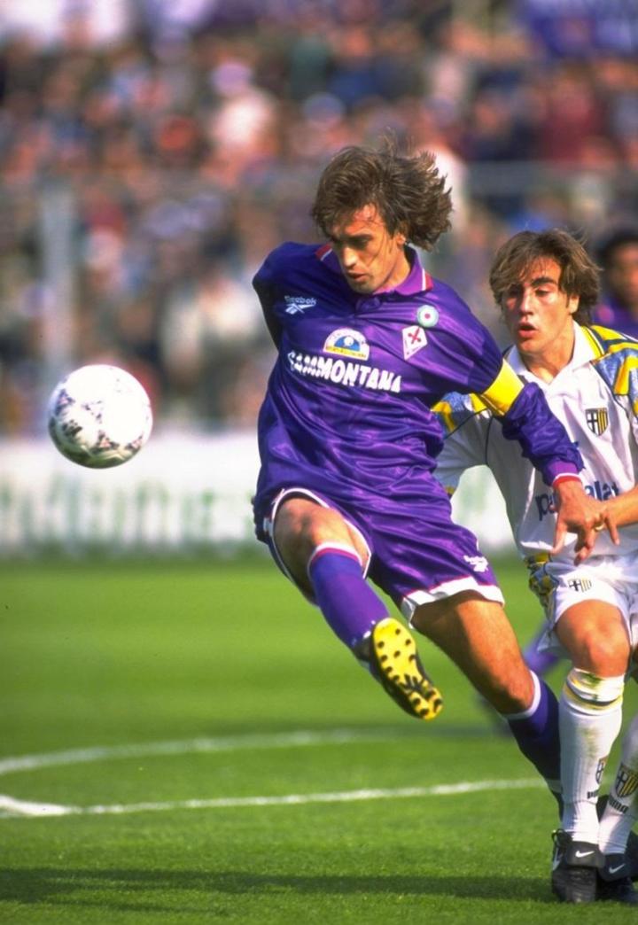 老颜上次说到巴蒂斯图塔在1991年夏天顺利登陆意甲,加盟紫百合佛罗伦萨。他的首个赛季开局良好,虽然当时意甲优秀后卫数不胜数,但是他们对这个陌生的大个子前锋并不熟悉,所以了给了巴蒂可乘之机,他在和尤文图斯,罗马队的比赛都取得了两个进球,还在和福贾队的比赛中上演帽子戏法,巴蒂的势头让球迷们很快爱上了这个阿根廷人,随后意大利品牌kronos和巴蒂签约,这个品牌在之前就和另一位阿根廷前锋巴尔博有个合作。但是他的当时的佛罗伦萨队却是巴西人的天下,主教练是巴西人拉扎罗尼,而球队的队长是巴西铁汉邓加。巴西师徒两人对阿根廷小伙子并不友好,巴蒂斯图塔的状态也受到了影响,他的抱怨也让意大利媒体把球队内部矛盾放大,赛季结束虽然巴蒂斯图塔打入了14个进球,但是球队排名意甲12位,并不理想。