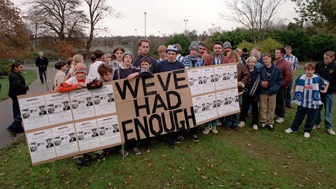 11. 布莱顿在上世纪90年代末遭遇了财政危机,两家俱乐部在2011年前几乎没有再怎么碰面。图为海鸥球迷抗议——“We’ve had enough”。