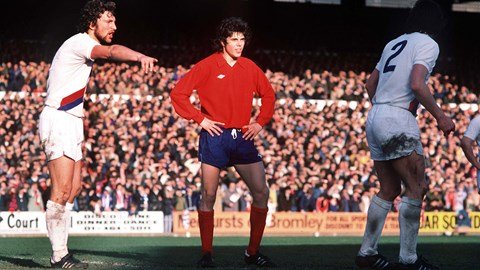 4. 1976-77赛季——敌对激化的一个赛季。我们与布莱顿居然交手了5次,其中三场都是足总杯。我们在第一轮被抽中了布莱顿,结果2-2战平,重赛依然是平局——1-1,第二次重赛在中立场地举行,并且因为恶劣天气两次被延期,最终于12月6日在斯坦福桥举行,我鹰1-0淘汰对手。图为三场足总杯比赛的第二场中,布莱顿主帅穆列里指导他的球员。他在首回合比赛后公开批评了维纳布莱斯。而在与水晶宫的足总杯第三场比赛中,穆列里对水晶宫球迷做出不敬手势——有一位水晶宫球迷将咖啡倒在了他身上,因此穆列里从口袋里掏出一把钱,扔在了地上,并喊道:“这就是你们的价值,水晶宫!”以及做出了其他手势,最终他因为不当行为被罚款。