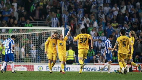 15. 2012-13赛季英冠升级附加赛,联赛排名第四的布莱顿与排名第五的水晶宫在半决赛相遇。首回合我们在主场0-0战平,次回合扎哈梅开二度,帮助我鹰2-0客场取胜,踩着布莱顿晋级决赛。在决赛加时赛,我们1-0击败沃特福德,成功升入英超。