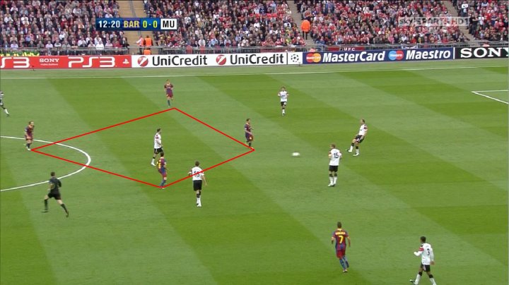 既然压迫是为了压缩对手的进攻空间,防守方自然要形成衔接紧密、层次分明的防守阵型,三条线保持合理的纵深距离,避免阵线拉得过长而导致的前后场脱节,让对手获得反击空间。另一方面,防守方又得覆盖尽可能大的防守范围。一般3-4人的三角或菱形是最好的小组搭配形式,短传为主的球队天然就具备这一条件,比如巴萨、曼城。