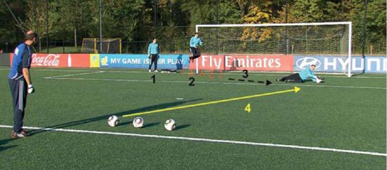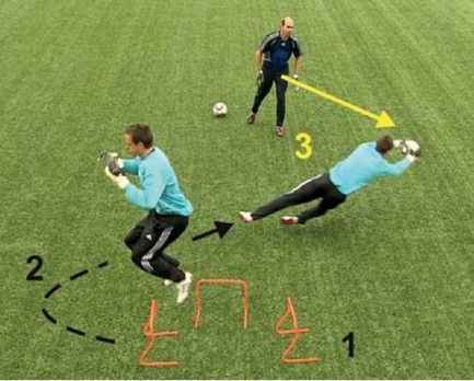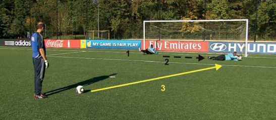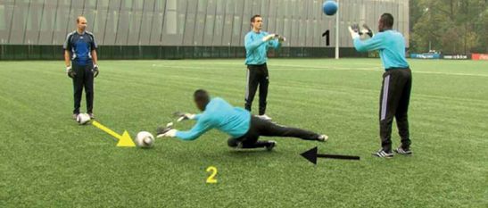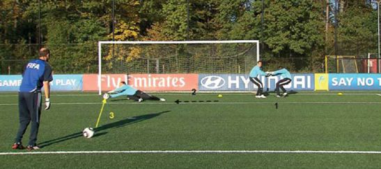3. 倒地扑救另一侧半高球。换守门员。3次