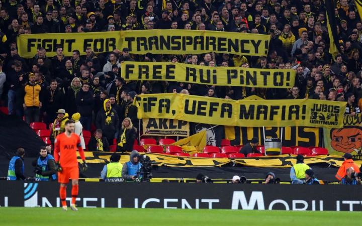 还记得之前曝光曼城邮件导致他们被欧足联禁赛的黑客平托吗?他被捕之后,有且只有德甲多家俱乐部的球迷打出了“金钱毁灭足球”、“释放平托”、“国际足联和欧足联都是XX”的标语,多特球迷甚至在德甲和欧冠连续举了半个多月。