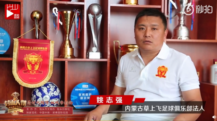 姚志强:因为我是从15年参加中乙联赛,五六年了,我一看15年的16支队中乙投资人就剩我自己了,其他人都退出了,这对我自己继续坚持的信念有巨大打击,要知道,本身从资金实力上讲是我真的是最弱小的一个投资人。