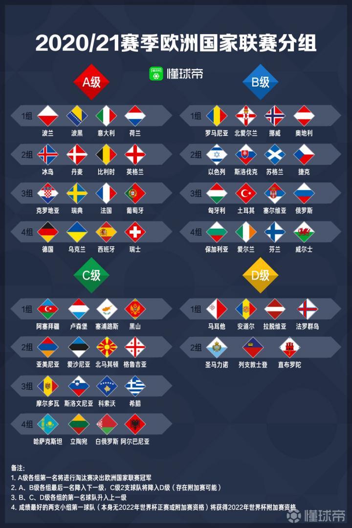 一图流!2020-21赛季欧洲国家联赛抽签结果及...