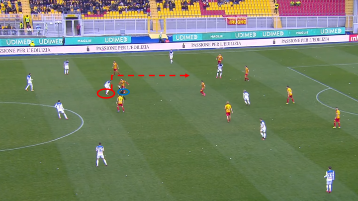 由于莱切的几个中场持球能力和传球能力较差,他们这个赛季的平均控球率只有43%,这场遇到赛季平均控球率高达58%的亚特兰大,他们孱弱的中场被完全压制。尤其是中场的马耶尔,他在这场比赛失误频频,传球成功率只有60%,这让他们的进攻多次自乱阵脚。