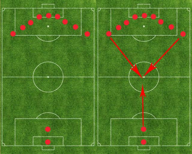不过这种阵型的劣势也非常的明显,尽管能够在防守中为球队提供巨大的帮助,但多达两位防守型后腰的投入也让球队在中场的组织进攻方面陷入了劣势,两位后腰的后撤让球队的中路进攻几乎失去了发起点,而边路突击一旦失败对方则可以直接跨过广阔的中场区域直接面对包括两位后腰在内的后防线。