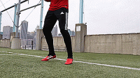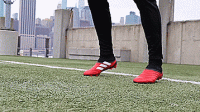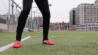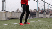 第一种方法是脚内侧控球,也是最基本的控球方法,这也是初学者必须要学会的技术,也就是用图中球鞋三道杠的地方来进行触球。这是脚部比较宽的一块区域,出错的空间小,更容易控制,这会让我们处于第二脚将球更好传回的姿势。