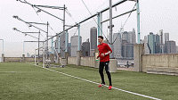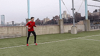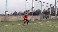 这样缓冲可以让球更靠近身体,我们一旦掌握这个技巧,我们便可以在运动中运用它,不用再将脚打开90度和球保持平行,我们也可以转过45度,在运动中将球接向任何我们想要的方向。