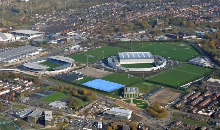 尽管起步晚,但后期巨大的投资和现代化的建设规划使得曼城青训比其他老牌青训系统规模更大,体系更加现代化,在足球人才遍地都是的英格兰乃至欧洲地区,这同样也是人才争夺的优势之一,据悉,曼城青训学院斥资高达2亿英镑打造,位于曼彻斯特东部,占地80英亩,拥有16块半的全尺寸场地,其中半块场地用于门将以及任意球训练,12.5块专属于青少年梯队训练之用,值得一提的是,学院里的每一块草皮,不管是一线队用的还是梯队用的,一切的草皮水准都和主场的草皮质量保持一致,还有三座体育馆,一个7000坐席的体育场。基地里包含了先进的教育、医疗、运动科学以及住宿设施,所有的基础设施都是世界顶级。