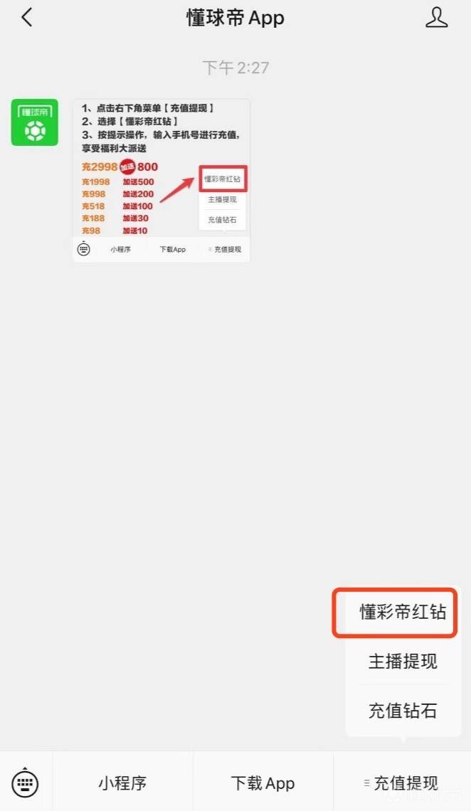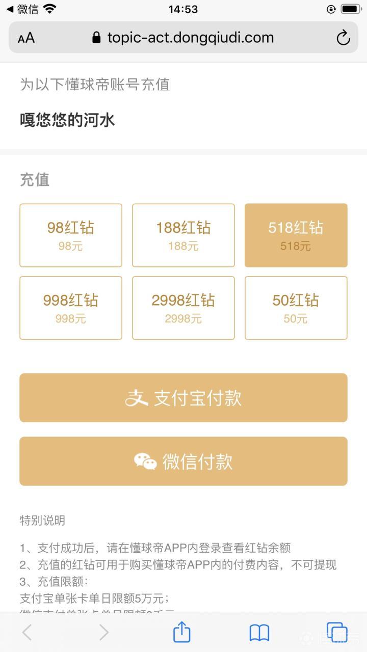 懂球帝APP微信公众号红钻充值功能开启