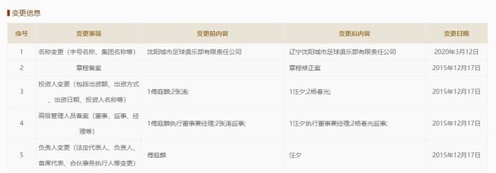 官方:沈阳城市更改俱乐部名为辽宁沈阳城市TitanMax @懂球帝2020-03-13 15:26根据国家企业信用信息公示系统显示,中甲新军沈阳城市足球俱乐部已经将俱乐部名改为“辽宁沈阳城市”。根据公示信息,俱乐部名称变更日期为3月12日。沈足的注册地依然为沈阳足协不变。德国转会市场中国区管理员朱艺透露,经辽宁足协同意,沈足冠上了“辽宁”之名。此前有媒体报道称,辽足解散后,其球员将由沈阳城市全面接收,辽足和沈足即将整合。而沈阳城市俱乐部投资人庄毅否认了这一消息,称会按照足协的规定办事。展开更多