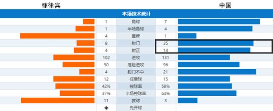 在国足客场0:0战平菲律宾的比赛中,中国男足全场90分钟内狂射35脚,但仅仅射正了14脚,并且其中绝大部分还是一些毫无威胁的“送球型射门”。面对实力更强的叙利亚时,国足全场比赛仅有区区8脚射门(只有2脚射正),如果不是效力于西班牙人的武磊用自己机敏的前插能力斩获一粒进球,恐怕国足只能无奈吞下客场完败的苦果了。