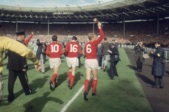 1966年博比-摩尔在温布利球场手举雷米特杯的一幕是英格兰足球历史上最光辉的画面。三狮队长的红色球衣上只印着两样东西:胸前的三狮标志,和背后醒目的6号。