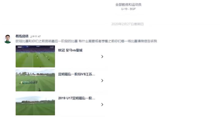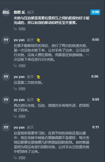 Hudl平台中,球员闫雨与教练乐倍思的沟通