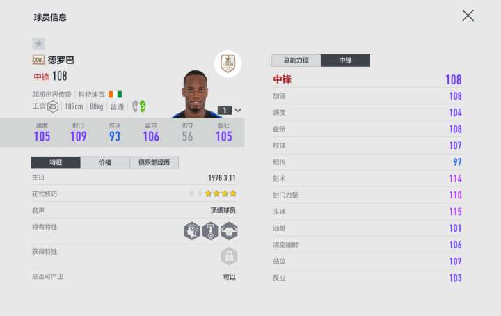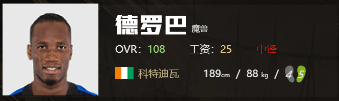 这样的德罗巴,难怪在登场不久就成了游戏中身价最高的球员之一了。
