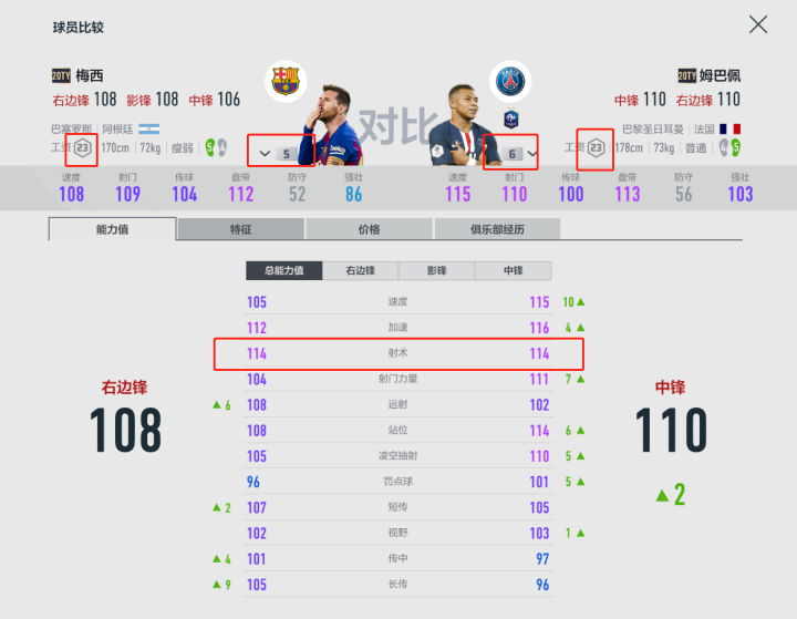 相当于5卡20TOTY梅西和6卡20TOTY姆巴佩的数值。