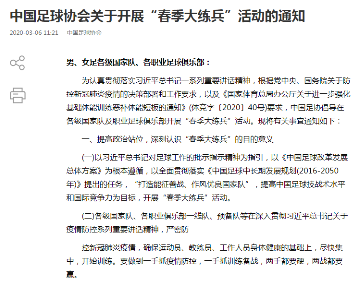 此次进行的春季大练兵,足协的公告写得很明白,并非将体测作为准入标准,而更像一种激励手段,“工作组将不定期赴各级国家队、各职业俱乐部进行检查,并对运动员基础测评指标进行抽查,抽查结果将定期在中国足协官网上进行公示、排名。对优秀的队伍、俱乐部及个人进行表扬,对未达到指标的队伍、俱乐部及个人进行通报批评,并取消年度联赛评优资格。”
